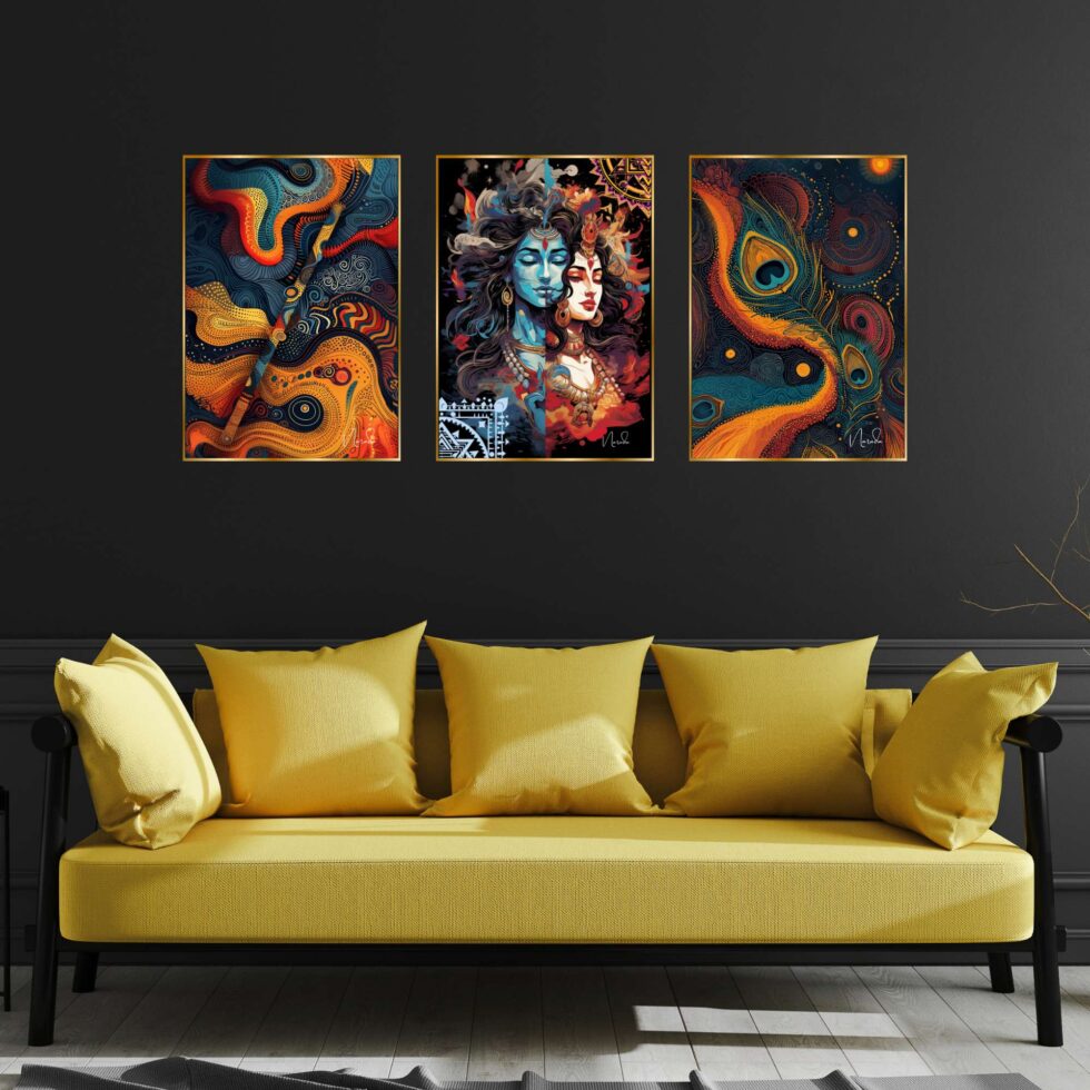 wall paintings, designed to elevate any room with their vibrant traditional charm. Perfect for a variety of settings, these intricate pieces are ideal for wall decor, whether you’re seeking artwork for your living room or bedroom. Our collection includes bold and large wall paintings that create a striking focal point, especially as big wall paintings for the living room. paintings are perfect for home decoration, seamlessly fitting into any space as wall art for living rooms or framed wall paintings for bedrooms. Whether you choose wall paintings with frames for the living room or bedroom, these pieces add an elegant, cohesive touch to your decor. Beyond living areas, these paintings also make beautiful kitchen wall decor and versatile wall hanging options. Enhance your living room wall decor with framed wall art that complements any style. Choose from various formats, including wall paintings golden frame,allowing you to customize your space with ease. Each painting blends traditional and abstract styles, offering both framed wall paintings and wall art decor that fit effortlessly into any room. Explore the beauty of art and bring a touch of culture and sophistication to your home with these exquisite wall paintings for decoration.